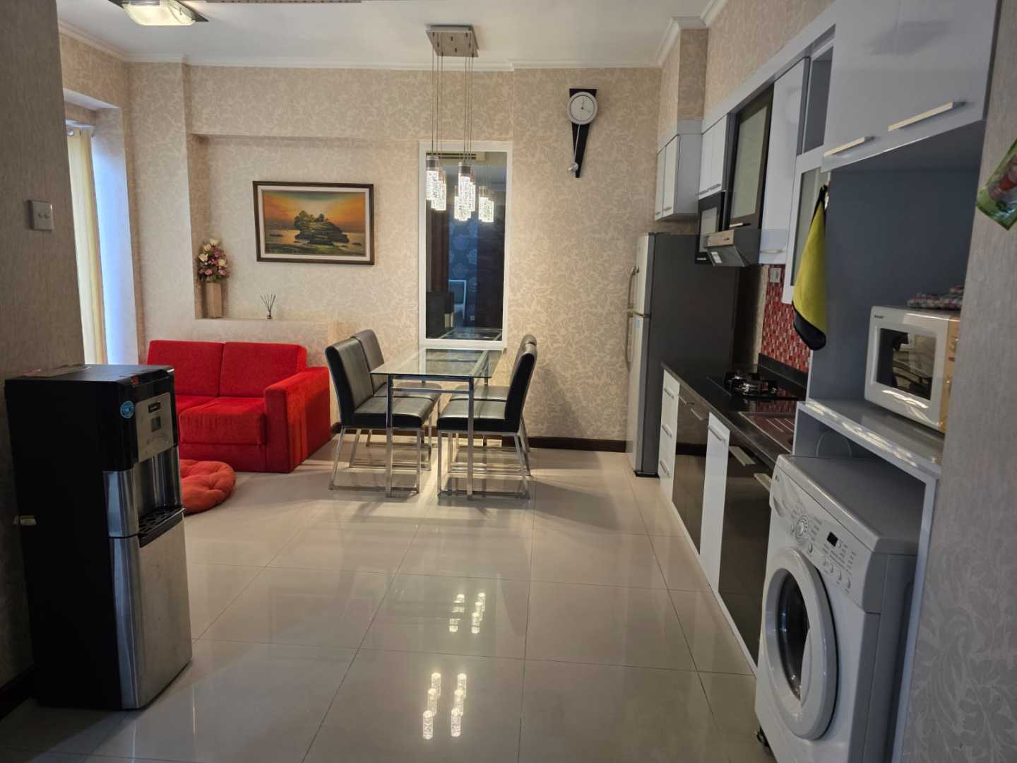 -Full Furnised (Meja mkn + 4 kursi, Sofa Bed + Meja rias + Lemari pakaian + Ranjang + Kasur Queen)