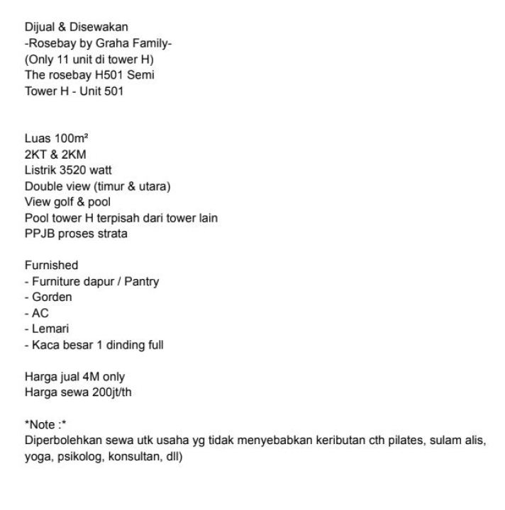 Jangan lewatkan kesempatan memiliki atau menyewa hunian mewah ini. Hubungi sekarang.