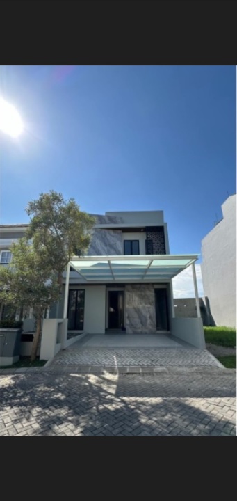 Rumah luxury siap huni di Wiyung, Surabaya. Hunian elit dengan 4 kamar tidur dan 6 kamar mandi, LT 129m², LB 205m². Harga eksklusif: 3,9 Miliar. Fasilitas sekitar lengkap.