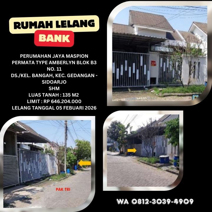 DIJUAL RUMAH VIA LELANG SIDOARJO (JAYA MASPION PERMATA - GEDANGAN CANDI) - LELANG KPKNL