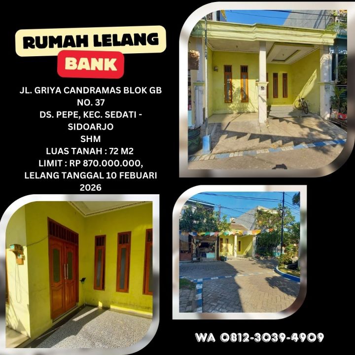 DIJUAL RUMAH VIA LELANG SIDOARJO (GRIYA CANDRAMAS - PEPE SEDATI) - LELANG KPKNL