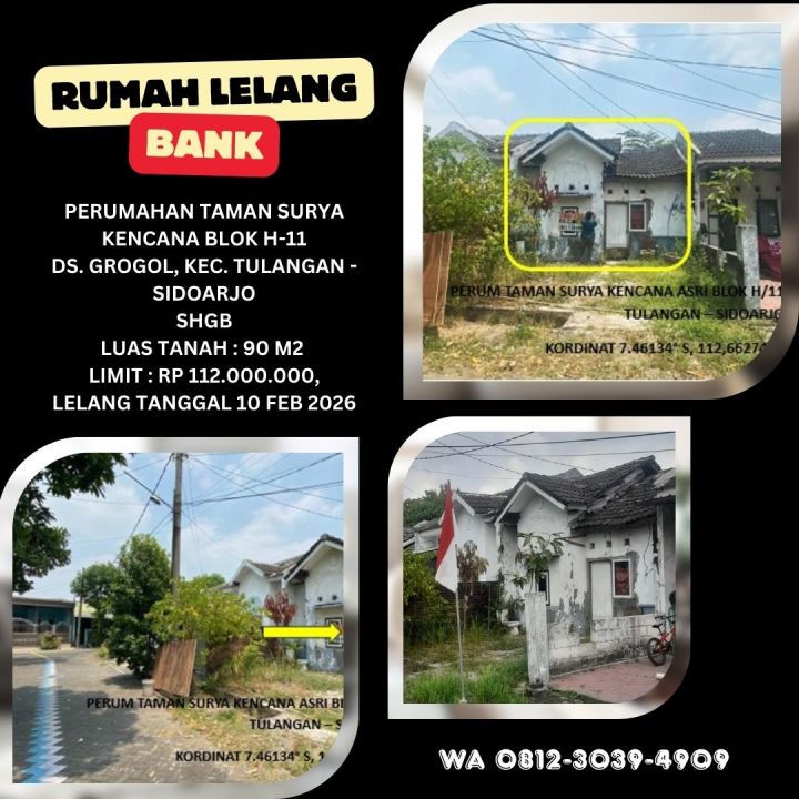JUAL RUMAH LELANG BANK DI SIDOARJO (TAMAN SURYA KENCANA - GROGOL TULANGAN) - LELANG KPKNL