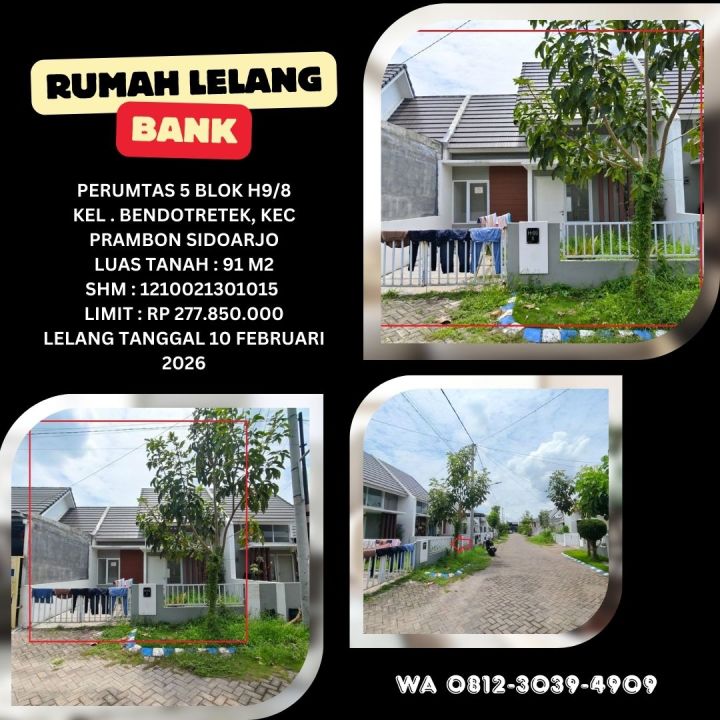 Jual Rumah Lelang Bank di Sidoarjo (Perumtas 5 - Prambon) - Lelang Kpknl