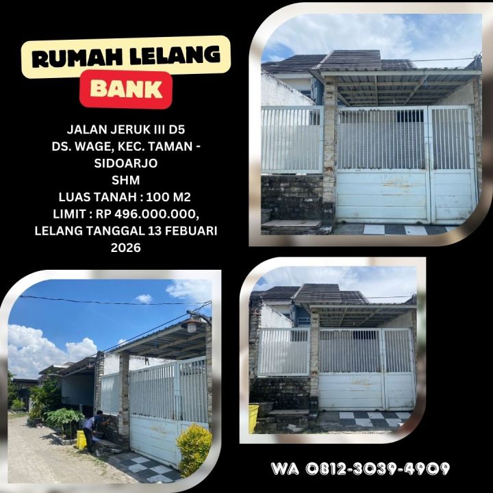 Jual Rumah Lelang Sidoarjo (Jalan Jeruk - Wage) - Lelang Kpknl