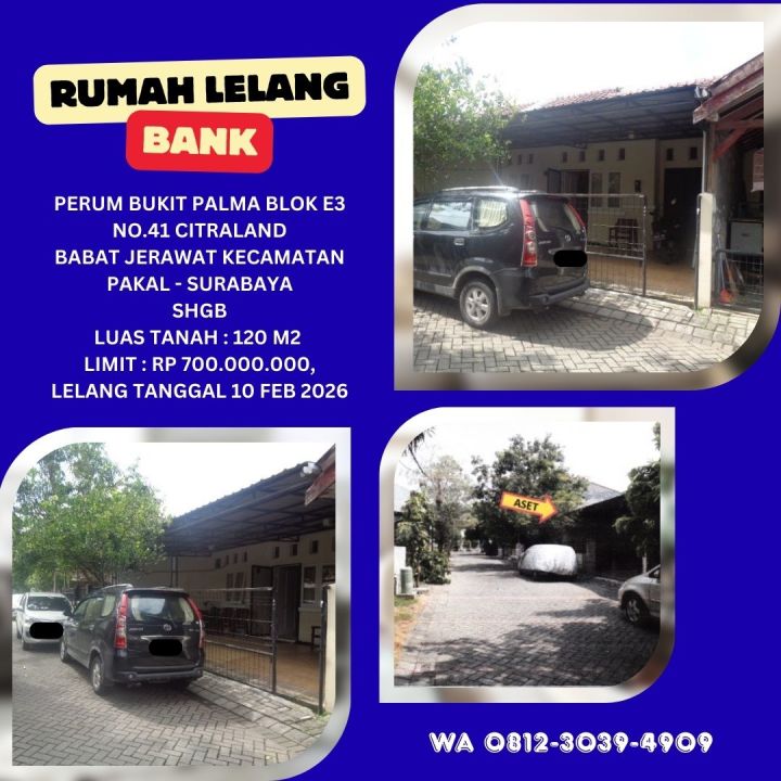 JUAL RUMAH LELANG BANK DI SURABAYA (BUKIT PALMA CITRALAND) - LELANG KPKNL