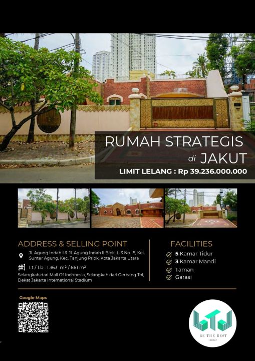 Dijual rumah eksklusif di kawasan elit Sunter, Jakarta Utara. Dengan desain modern, LT 1363m², LB 661m², terdiri dari 5 KT & 3 KM. Harga premium: 39,2 Miliar. Lingkungan prestisius.