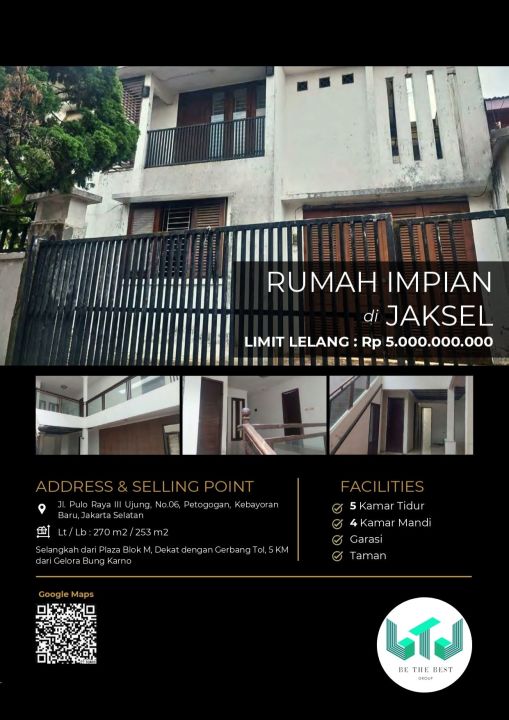 Hunian prestisius di Kebayoran Baru, Jakarta Selatan. Memiliki luas tanah 270m² dengan bangunan 253m², terdiri dari 5 kamar tidur & 4 kamar mandi. Harga eksklusif: 5 Miliar. Lingkungan privat.