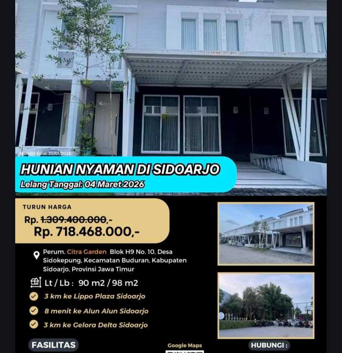 Dijual Murah Via Lelang Rumah di Citra Garden Cluster Orchard Sidoarjo