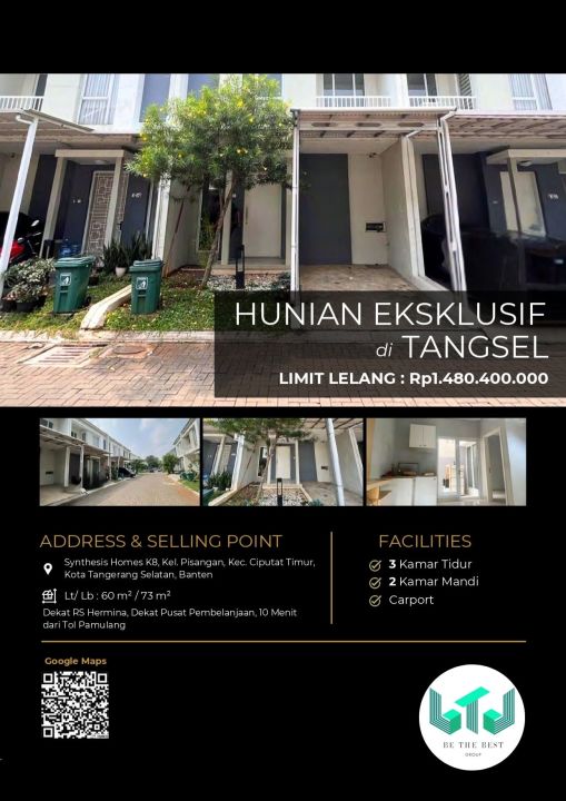 Tersedia rumah di Ciputat Timur, Tangerang Selatan. Hunian modern dengan 3 kamar tidur dan 2 kamar mandi. LT 60m², LB 73m². Harga terjangkau 1,48 Miliar. Lokasi strategis.