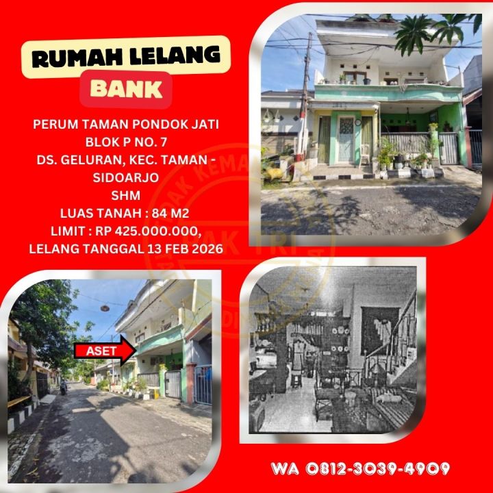 JUAL RUMAH LELANG (TAMAN PONDOK JATI - GELURAN TAMAN) SIDOARJO - LELANG KPKNL
