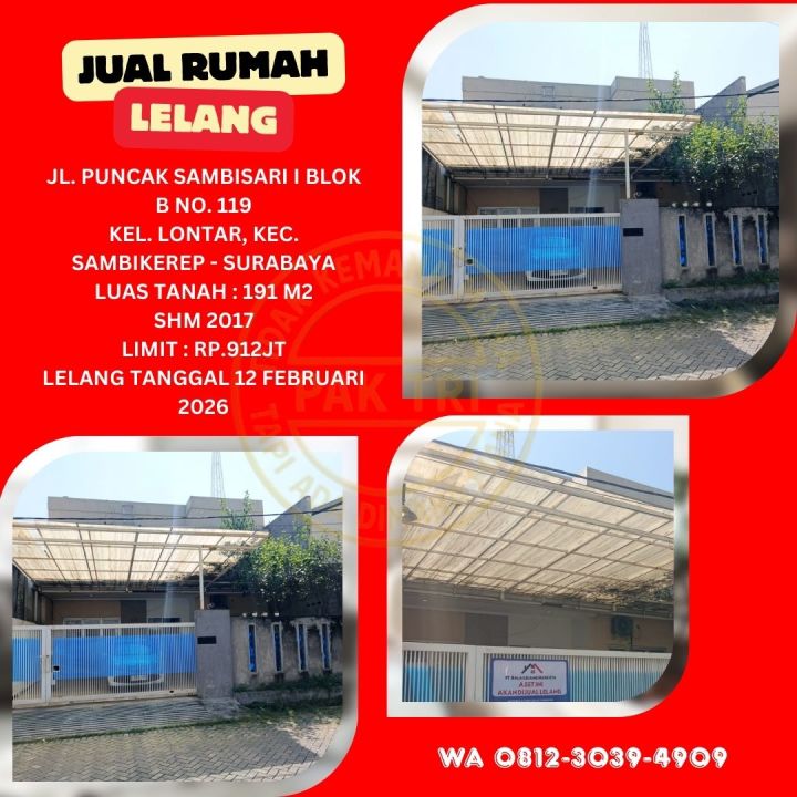 Jual Rumah Lelang Bank di Surabaya (Jl. Puncak Sambisari I - Lontar Sambikerep) - Lelang Kpknl