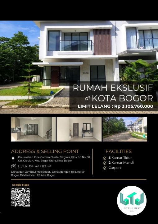 Penawaran terbatas rumah berkelas di Bogor Utara, Bogor. Desain elegan dengan LT/LB: 134/122m², 5 KT & 2 KM. Harga spesial: 3,1 Miliar. Kawasan elite.