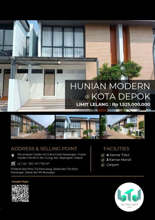 Rumah keluarga di lokasi strategis Bojong Sari, Depok. Dengan 4 KT dan 3 KM, LT 120m², LB 112m². Harga terbaik 1,52 Miliar. Dekat fasilitas umum.