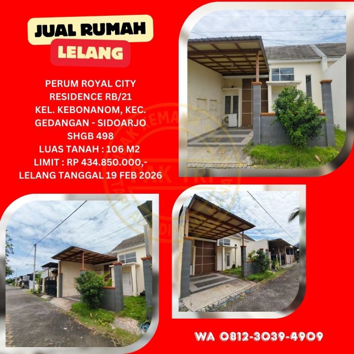 JUAL RUMAH LELANG BANK DI SIDOARJO (ROYAL CITY RESIDENCE - GEDANGAN) : LELANG KPKNL