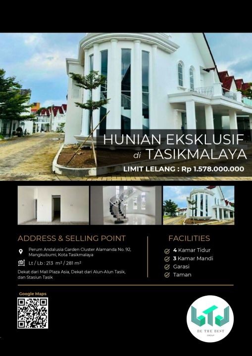 Dijual rumah di Mangkubumi, Tasikmalaya. Hunian nyaman dengan 4 kamar tidur dan 3 kamar mandi. LT 213m², LB 281m². Harga kompetitif 1,57 Miliar. Akses mudah ke fasilitas umum.