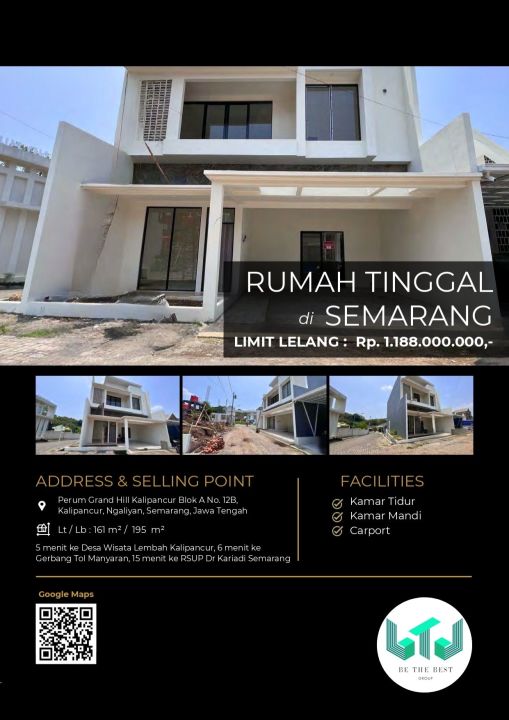 Promo terbatas rumah idaman di Ngaliyan, Semarang. Luas tanah 161m² dengan bangunan 195m², terdiri dari 2 KT & 2 KM. Harga kompetitif di kelasnya: 1,18 Miliar. Lingkungan asri dan aman.