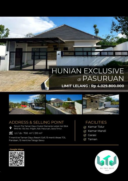 Tersedia rumah mewah di kawasan elit Prigen, Pasuruan. Dengan desain modern, LT 700m², LB 210m², terdiri dari 3 KT & 2 KM. Harga premium: 4,02 Miliar. Lingkungan prestisius.