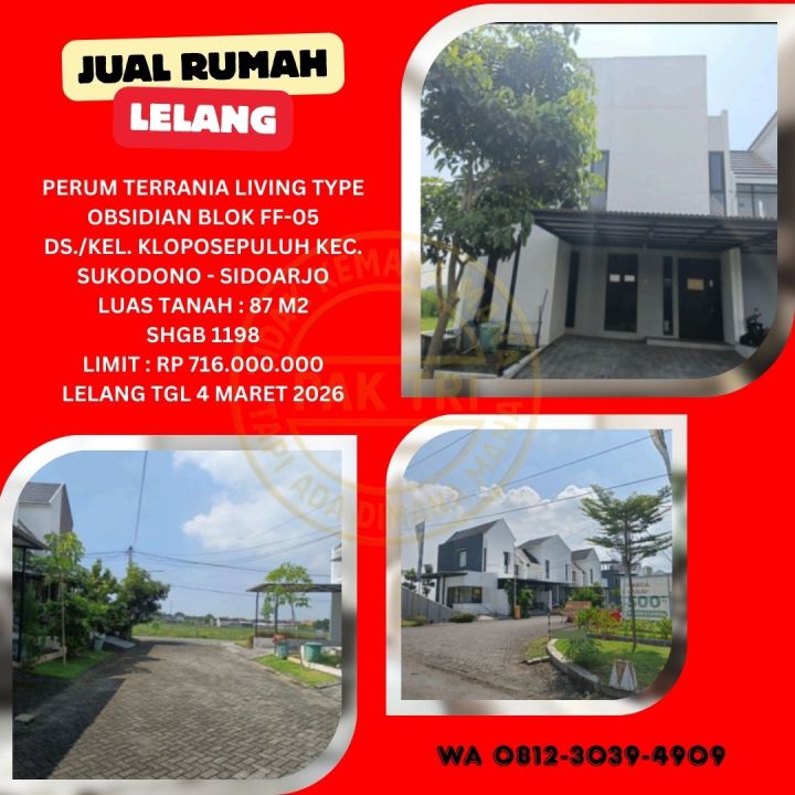 JUAL RUMAH LELANG BANK DI SIDOARJO (TERRANIA LIVING TYPE OBSIDIAN) : LELANG KPKNL