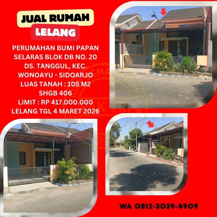 JUAL RUMAH LELANG BANK DI SIDOARJO (BUMI PAPAN SELARAS - WONOAYU) : LELANG KPKNL