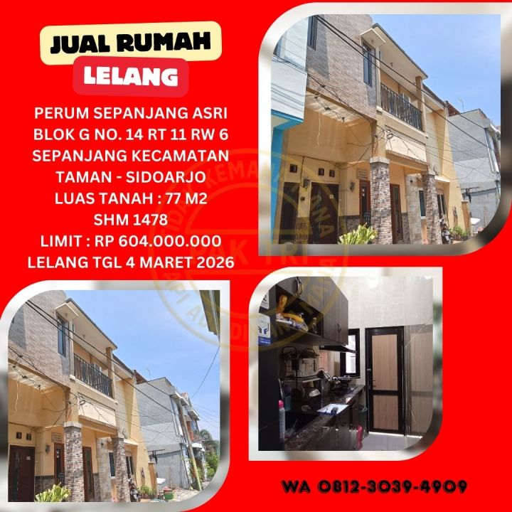 JUAL RUMAH LELANG BANK DI SIDOARJO (SEPANJANG ASRI - SEPANJANG TAMAN) : LELANG KPKNL