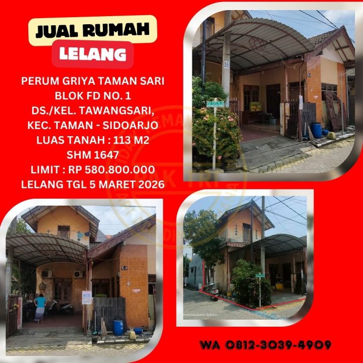 JUAL RUMAH LELANG BANK DI SIDOARJO (GRIYA TAMAN SARI) : LELANG KPKNL