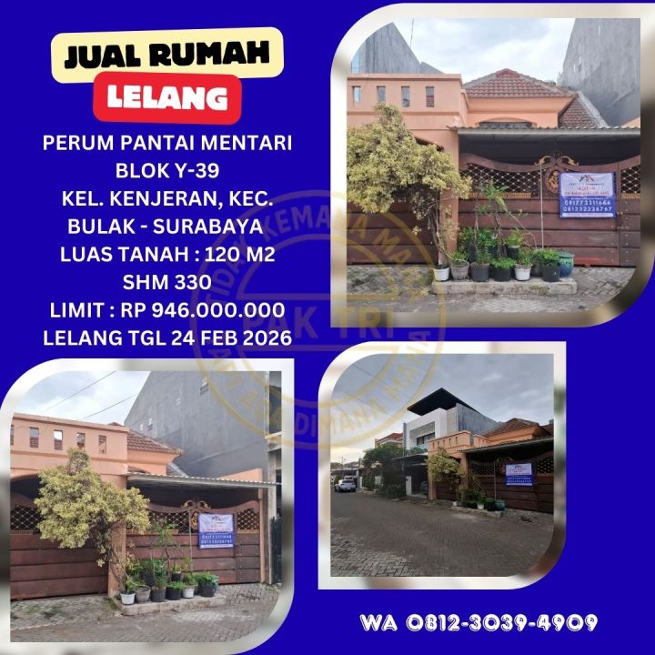 JUAL RUMAH LELANG BANK DI SURABAYA (PERUMAHAN PANTAI MENTARI) : LELANG KPKNL