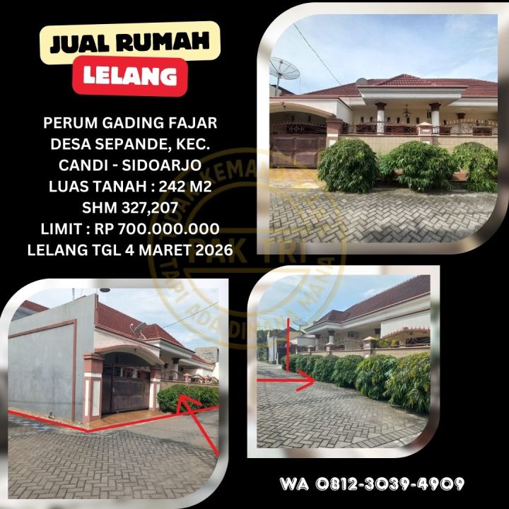 JUAL RUMAH LELANG BANK DI SIDOARJO (GADING FAJAR SEPANDE) : LELANG KPKNL