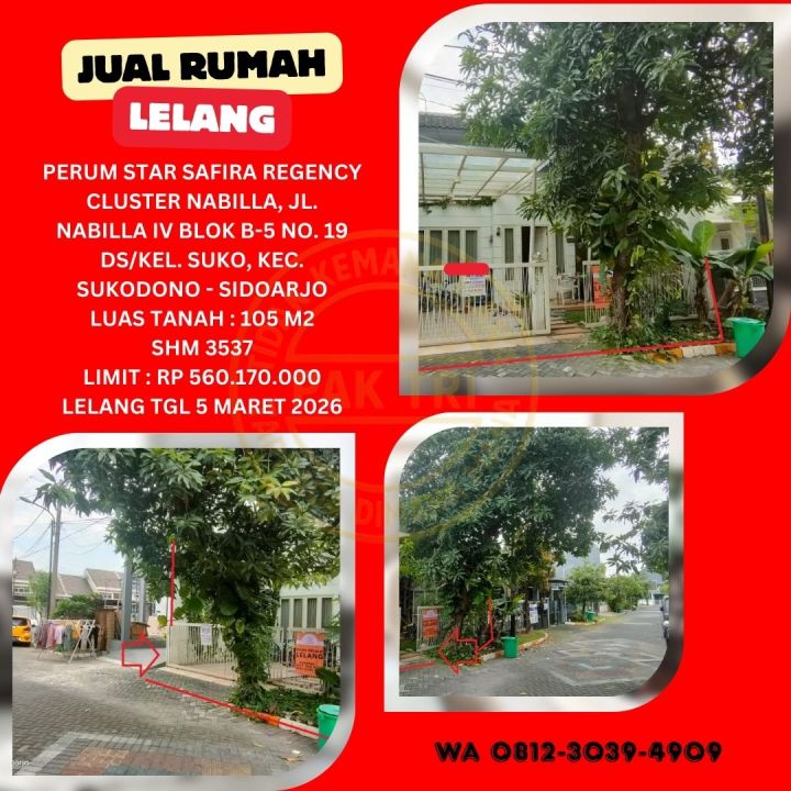 JUAL RUMAH LELANG BANK DI SIDOARJO (STAR SAFIRA REGENCY CLUSTER NABILLA) : LELANG KPKNL