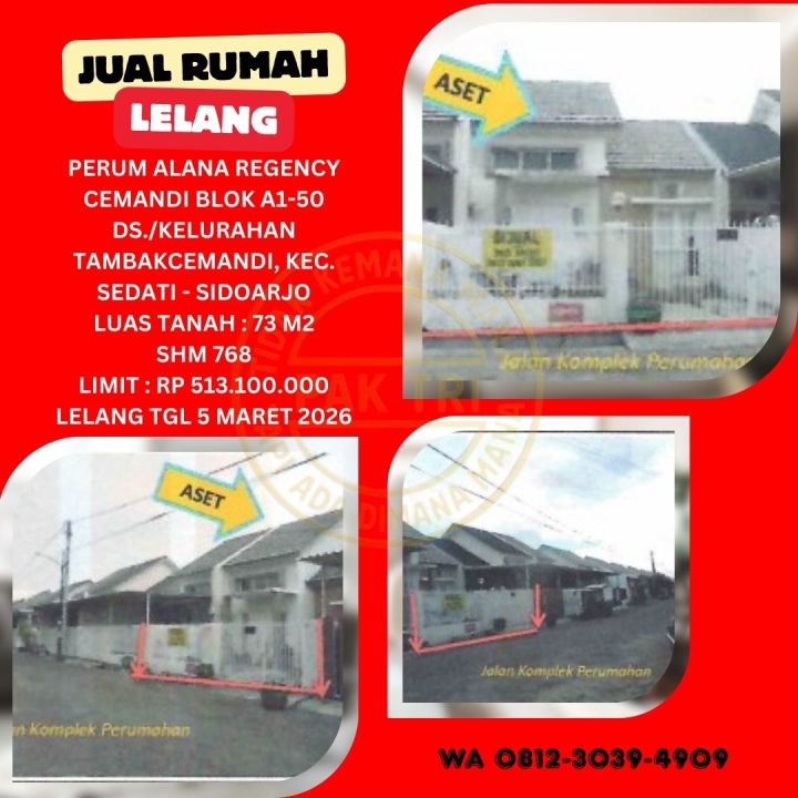 JUAL RUMAH LELANG BANK DI SIDOARJO (PERUM ALANA REGENCY CEMANDI) : LELANG KPKNL