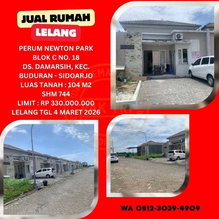 JUAL RUMAH LELANG BANK DI SIDOARJO (PERUM NEWTON PARK - BUDURAN) : LELANG KPKNL