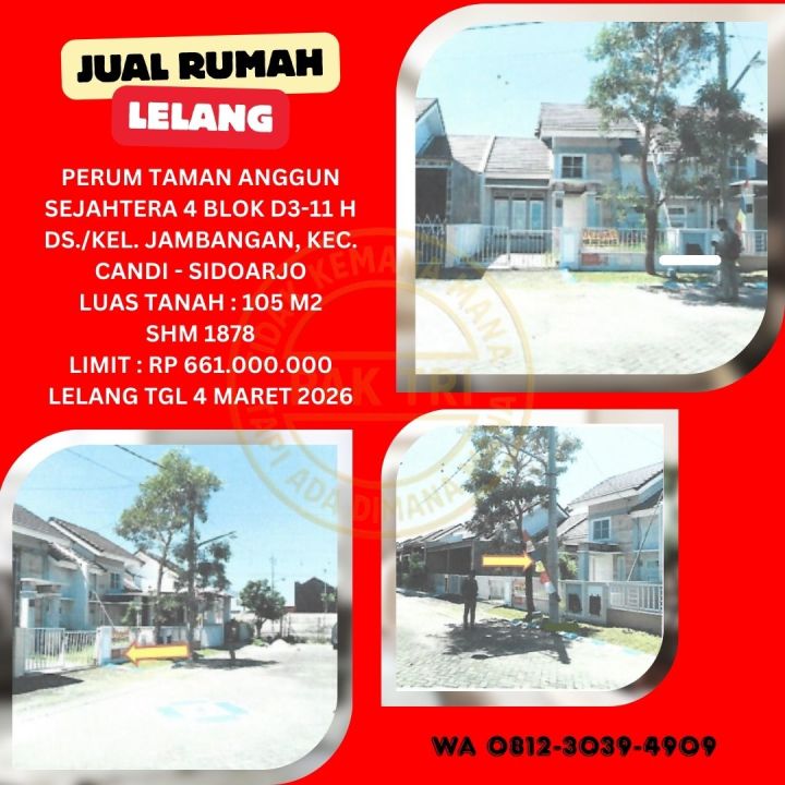 JUAL RUMAH LELANG BANK DI SIDOARJO (PERUMTAS 4 JAMBANGAN) : LELANG KPKNL
