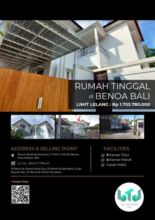 Penawaran menarik rumah di Benoa, Badung. Memiliki 3 kamar tidur, 4 kamar mandi, luas tanah 210m², luas bangunan 179m². Harga spesial: 1,75 Miliar. Lingkungan nyaman.