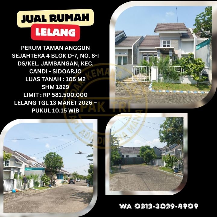 JUAL RUMAH LELANG BANK DI CANDI SIDOARJO (PERUMTAS 4 JAMBANGAN) - LELANG KPKNL