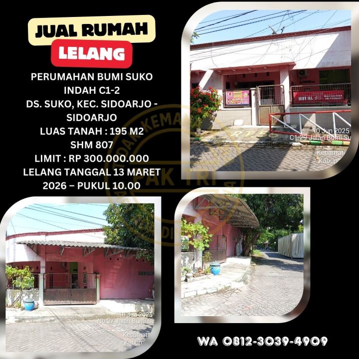 JUAL RUMAH LELANG BANK DI SUKO SIDOARJO (PERUM BUMI SUKO INDAH) - LELANG KPKNL