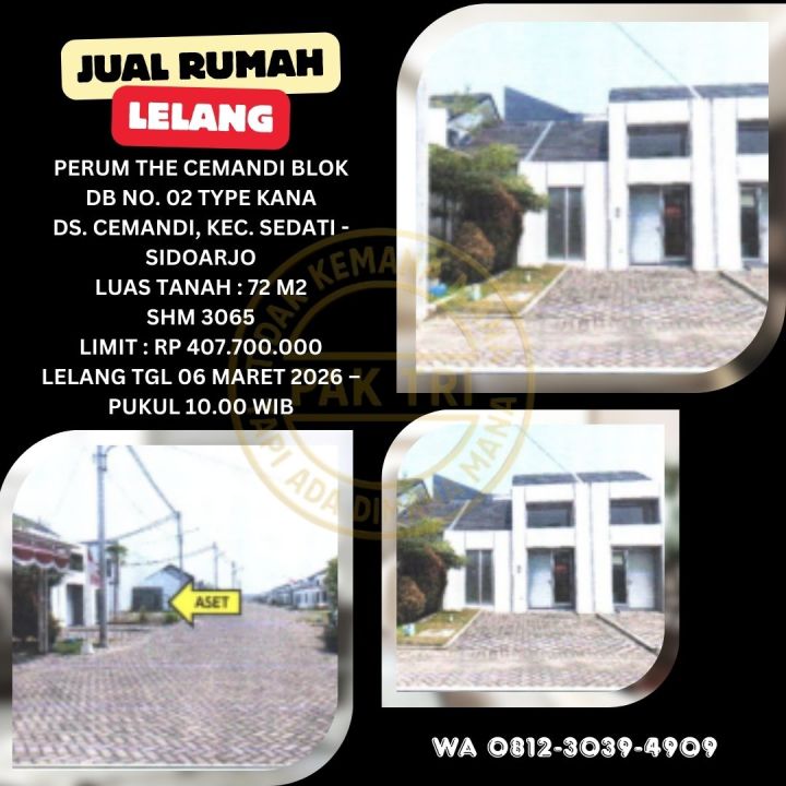 JUAL RUMAH LELANG BANK DI SEDATI SIDOARJO (PERUM THE CEMANDI) - LELANG KPKNL