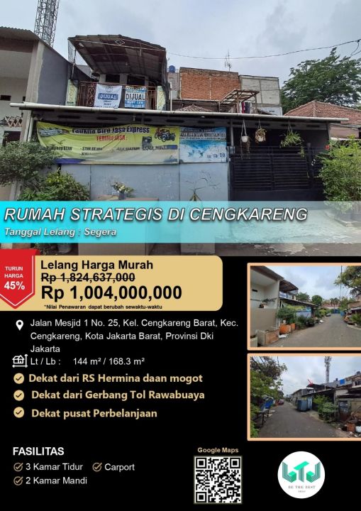Rumah keluarga di lokasi strategis Cengkareng, Jakarta Barat. Punya 3 KT dan 2 KM, LT 144m², LB 168m². Harga terbaik 1 Miliar. Dekat fasilitas umum.