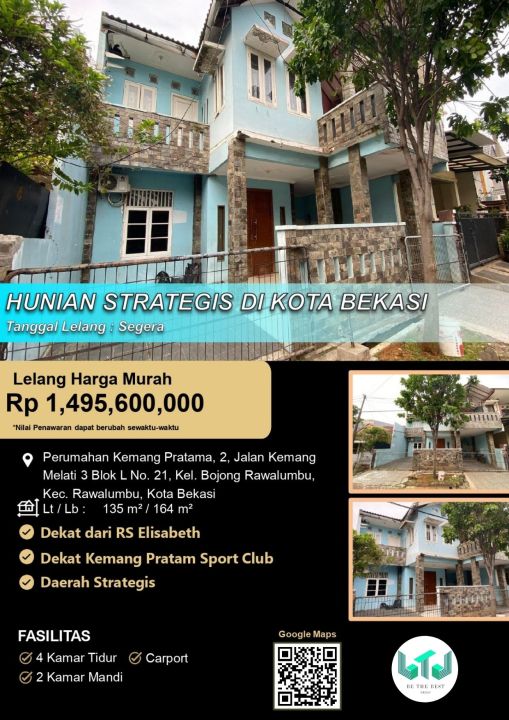 Dijual rumah di Rawalumbu, Bekasi. Hunian nyaman dengan 4 kamar tidur dan 2 kamar mandi. LT 135m², LB 164m². Harga terjangkau 1,49 Miliar. Akses mudah ke fasilitas umum.