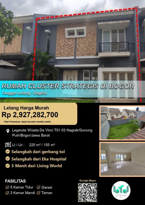 Rumah luxury baru renovasi di Gunung Putri, Bogor. Hunian elit dengan 5 kamar tidur dan 3 kamar mandi, LT 220m², LB 155m². Harga eksklusif: 2,92 Miliar. Fasilitas sekitar lengkap.
