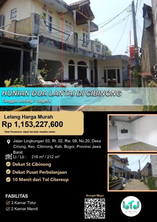 Rumah keluarga di lokasi strategis Cibinong, Bogor. Dengan 3 KT dan 2 KM, LT 216m², LB 212m². Harga terbaik 1,15 Miliar. Dekat fasilitas umum.