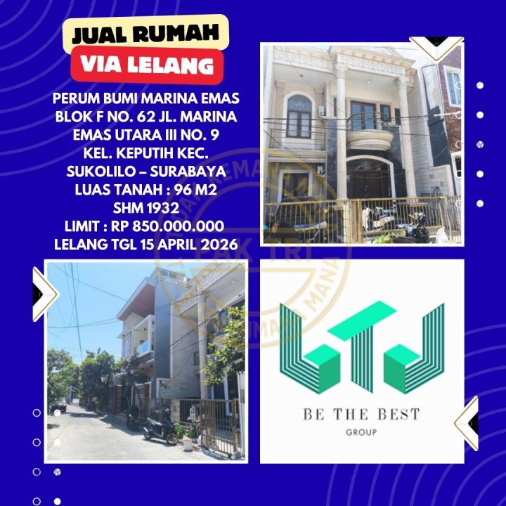 DIJUAL RUMAH VIA LELANG DI SUKOLILO SURABAYA (PERUM BUMI MARINA EMAS) - LELANG KPKNL
