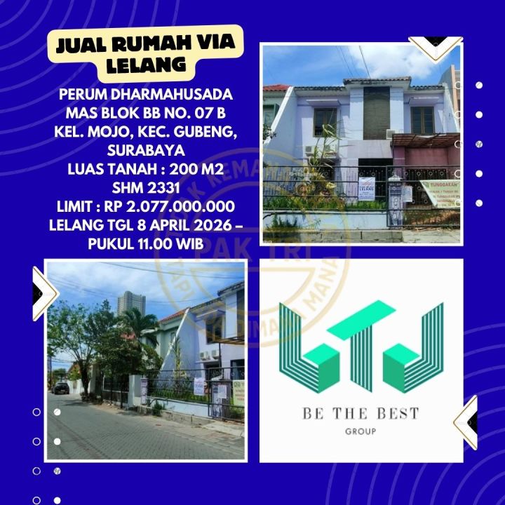 DIJUAL RUMAH VIA LELANG BANK DI GUBENG SURABAYA (PERUM DHARMAHUSADA MAS) - LELANG KPKNL