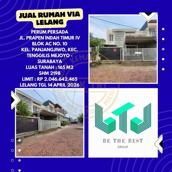 DIJUAL RUMAH VIA LELANG DI TENGGILIS MEJOYO SURABAYA (JL. PRAPEN INDAH TIMUR IV) - LELANG KPKNL