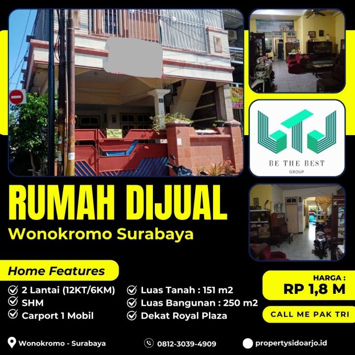 Miliki rumah di Wonokromo, Surabaya. Memiliki 12 kamar tidur, 6 kamar mandi, luas tanah 151m², luas bangunan 250m². Harga spesial: 1,8 Miliar. Lingkungan aman.
