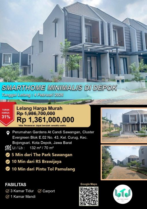 Dengan Rp. 1.360.000.000, anda bisa langsung dapatkan rumah terbaik di daerah Bojongsari ini.