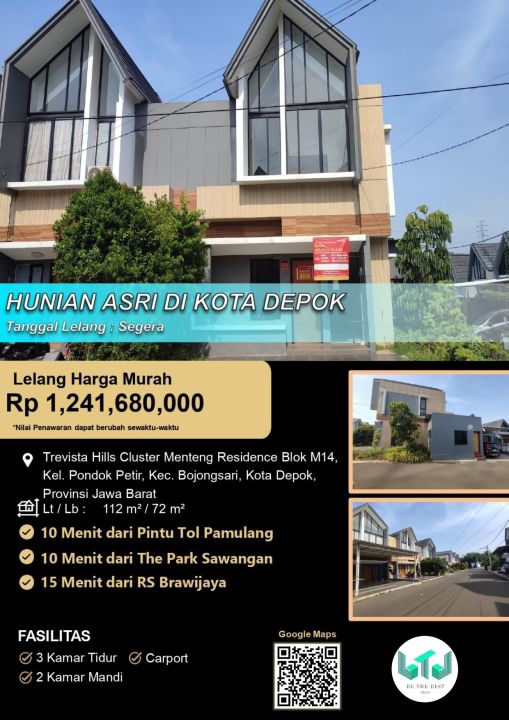 Segera miliki rumah keluarga di Bojongsari, Bogor. Luas tanah 112m² dengan bangunan 72m², terdiri dari 3 KT & 2 KM. Harga terbaik di kelasnya: 1,24 Miliar. Lingkungan asri dan aman.
