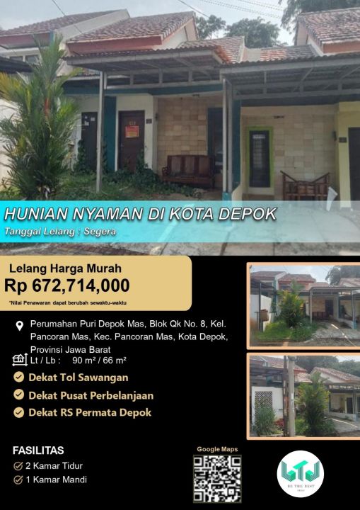 Dengan harga Rp. 672.710.000, anda bisa memiliki hunian premium yang sudah siap huni dan bersertifikat SHM - Sertifikat Hak Milik. Jangan lewatkan kesempatan untuk menikmati investasi di kawasan Pancoran Mas yang nyaman ini!