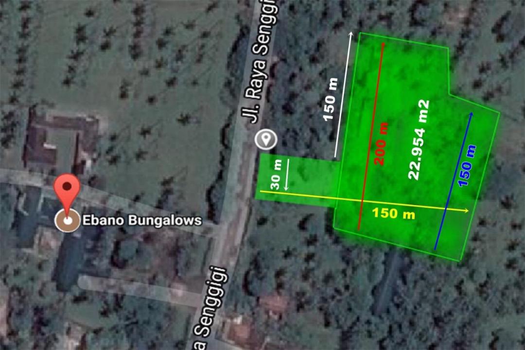 Tanah luas dan strategis ini terletak di Jalan Raya Senggigi, Lombok Barat, hanya 15 menit dari pusat Senggigi. Memiliki akses langsung ke jalan raya utama, lokasi ini sangat potensial untuk berbagai jenis investasi, seperti perumahan, vila, atau bisnis komersial.