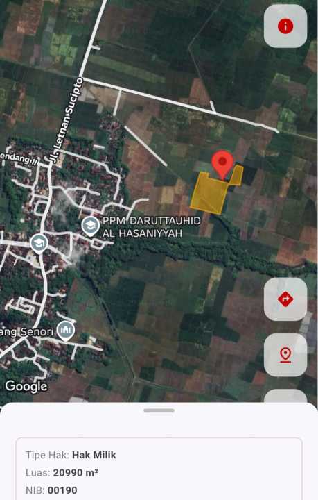 Jual tanah minimalis di Senori, Tuban, LT 20990m², harga murah 420 Juta. Cocok untuk rumah tinggal.