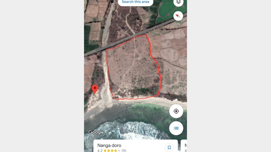 Tanah tepi pantai ini berada di kawasan prima Sumbawa, menghadap langsung ke pantai, memiliki akses jalan utama, serta dekat dengan pantai selancar terkenal Nanga Doro dan Lakey Beach.