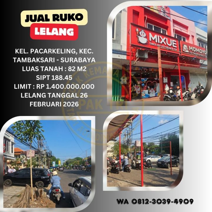JUAL RUKO LELANG BANK DI SURABAYA (PACARKELING - TAMBAKSARI) : LELANG KPKNL